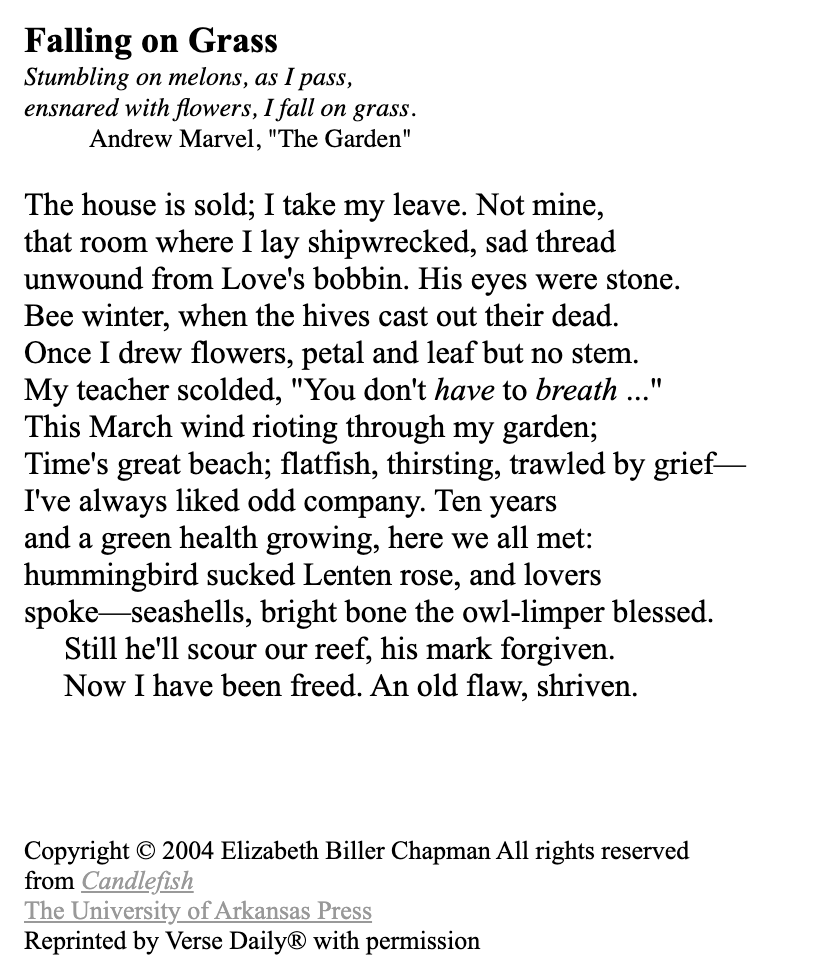 A five minute conversation with poet, Elizabeth Biller Chapman. And a short reflection.